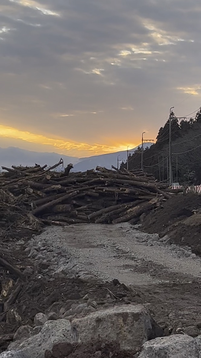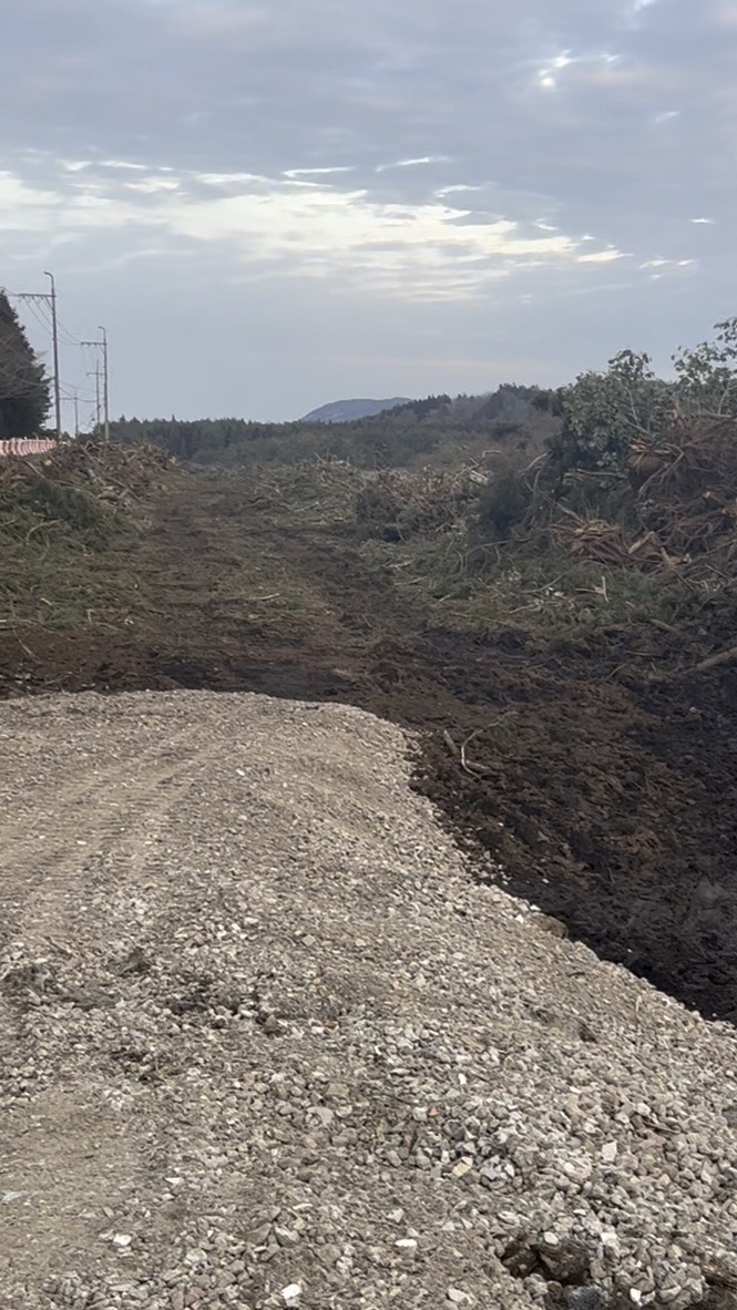 현장에 가보니 곳곳에는 전기톱으로 난도질당한 나무들이 시체더미처럼 쌓여 있었습니다. 곳곳에 흩어져 있는 찢어진 나무 조각들이 마치 살점처럼 보였고, 다 뒤집어엎어진 흙 위로는 벌써 도로 포장이 시작되고 있었습니다. 현재 진행 중인 공사 무효 재판의 결과가 나오지도 않았는데 새벽에 기습적으로 시작된 벌목의 현장이었죠.
