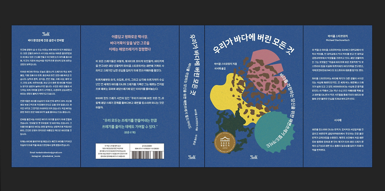 안녕하세요, 여러분! 바다 환경문제 전문 출판사 한바랄입니다. 작년 말에 『우리가 바다에 버린 모든 것』을 전국 도서관에 납품하면서 품절이 된 이후로 시간이 벌써 많이 흘렀습니다. 그동안 이 책을 찾으신 분들이 계셨는데 증쇄를 바로 찍지 못해 송구스럽습니다. 그동안 이 책에 어떤 종이를 사용할지 고민하고 표지 디자인을 개선하면서 정신없이 시간을 보내다 보니 벌써 4월이 되었네요.
