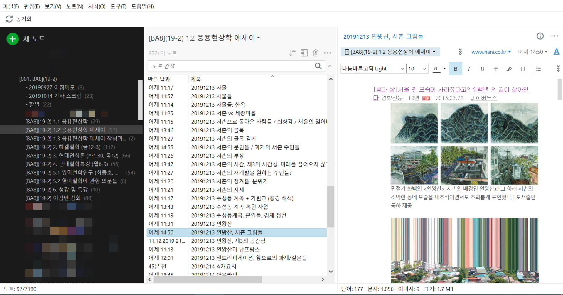 ▲ 본격적으로 글쓰기 주제를 구체적으로 정하기 전에 쓰고 싶은 주제와 관련된 뉴스 10년치와 관련 논문들을 전부 아카이빙했다. 대충 어떤 이슈들이 있었는지 개괄적으로 파악했고 어떤 방향으로 에세이를 쓸 수 있을지를 파악했다. 이 부분은 꼭 논문 쓸 때 뿐만 아니라 새로운 주제에 관해 공부를 시작할 때에도 요긴하게 쓸 수 있을 것 같다.