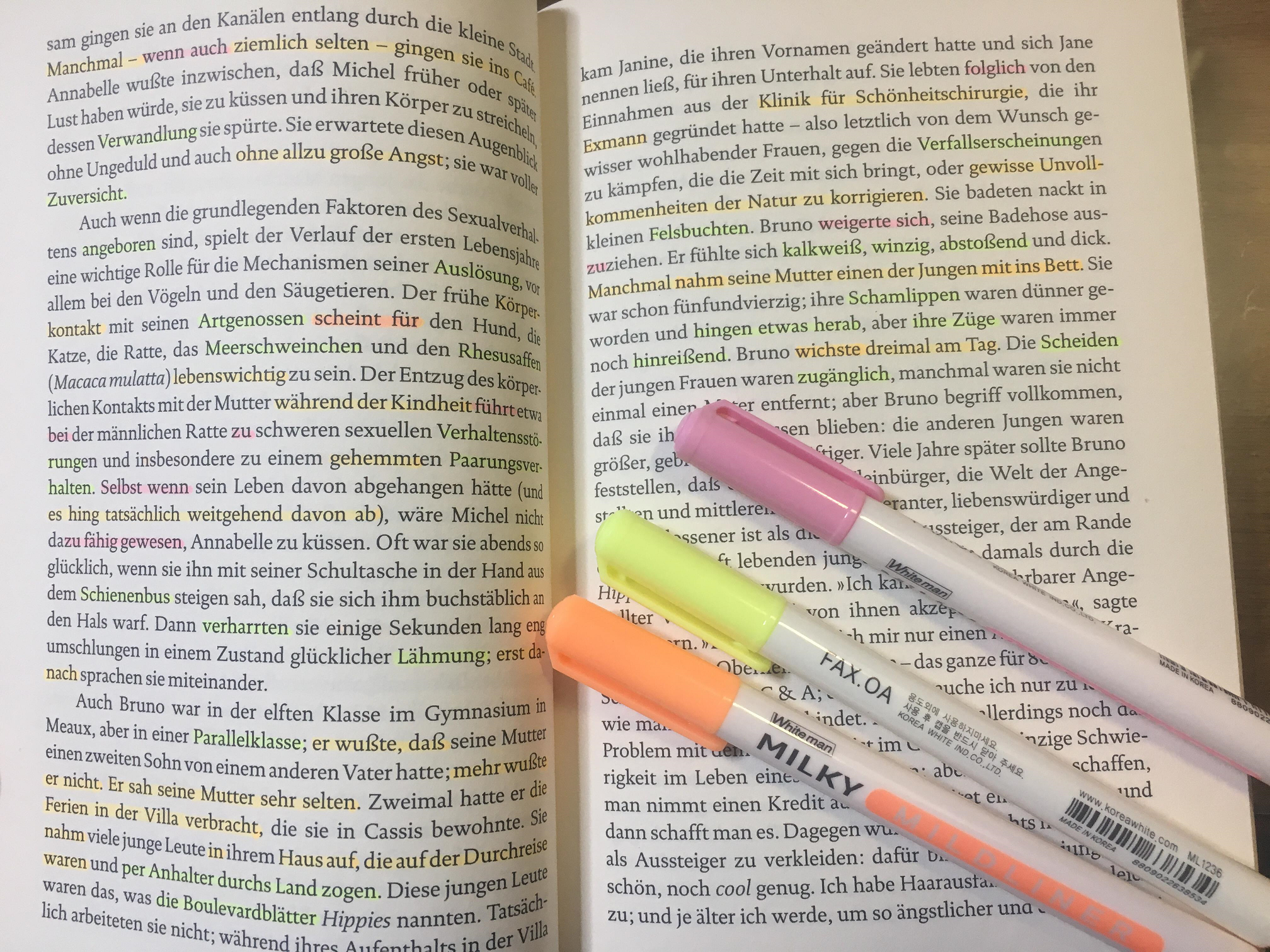 문장의 패턴으로서 반복적으로 등장하는 표현들, 사실상 Modalverb만큼 자주 쓰이는 기본적인 동사들, 표현의 뉘앙스를 담고 있는 부사 등 : 분홍색